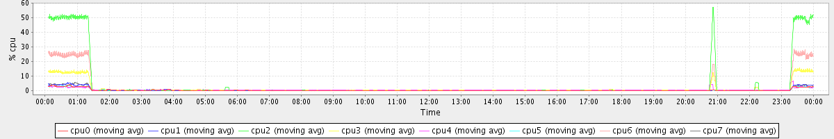 avg(cpu0) = 1.01 avg(cpu1) = 0.92 avg(cpu2) = 1.14 avg(cpu3) = 0.86 avg(cpu4) = 0.54 avg(cpu5) = 0.47 avg(cpu6) = 0.49 avg(cpu7) = 0.35