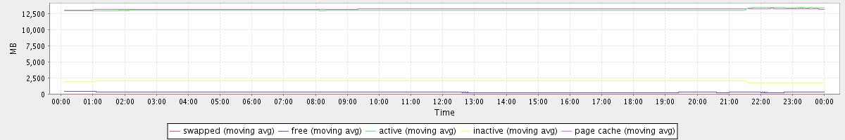 avg(swapped) = 0.20 avg(free) = 289.72 avg(active) = 13040.51 avg(inactive) = 2025.00 avg(page cache) = 13206.75