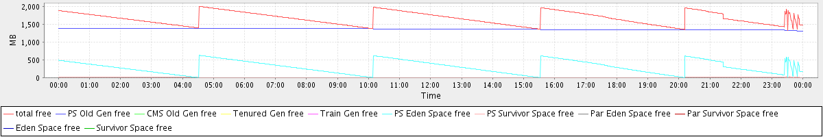 avg(total free) = 1673.22 avg(PS Old Gen free) = 1370.10 avg(CMS Old Gen free) = 0.00 avg(Tenured Gen free) = 0.00 avg(Train Gen free) = 0.00 avg(PS Eden Space free) = 299.92 avg(PS Survivor Space free) = 3.20 avg(Par Eden Space free) = 0.00 avg(Par Survivor Space free) = 0.00 avg(Eden Space free) = 0.00 avg(Survivor Space free) = 0.00
