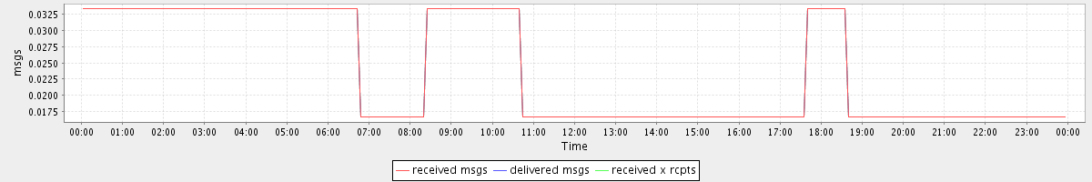 avg(received msgs) = 0.01 avg(delivered msgs) = 0.01 avg(received x rcpts) = 0.01