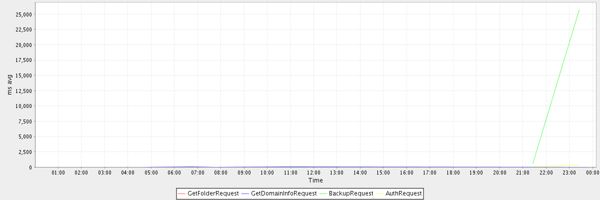 avg(GetFolderRequest) = 64.00 avg(GetDomainInfoRequest) = 3.92 avg(BackupRequest) = 13136.00 avg(AuthRequest) = 187.00