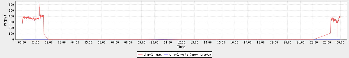 avg(dm-1 read) = 690.70 avg(dm-1 write) = 0.65