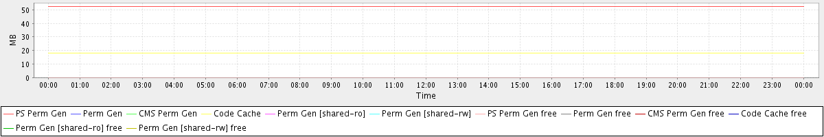 avg(PS Perm Gen) = 52.58 avg(Perm Gen) = 0.00 avg(CMS Perm Gen) = 0.00 avg(Code Cache) = 18.03 avg(Perm Gen [shared-ro]) = 0.00 avg(Perm Gen [shared-rw]) = 0.00 avg(PS Perm Gen free) = 0.04 avg(Perm Gen free) = 0.00 avg(CMS Perm Gen free) = 0.00 avg(Code Cache free) = 0.05 avg(Perm Gen [shared-ro] free) = 0.00 avg(Perm Gen [shared-rw] free) = 0.00