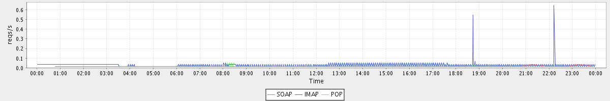 Host zm01-int.stanford.edu: Mailboxd: Request Rate by Client Protocol
