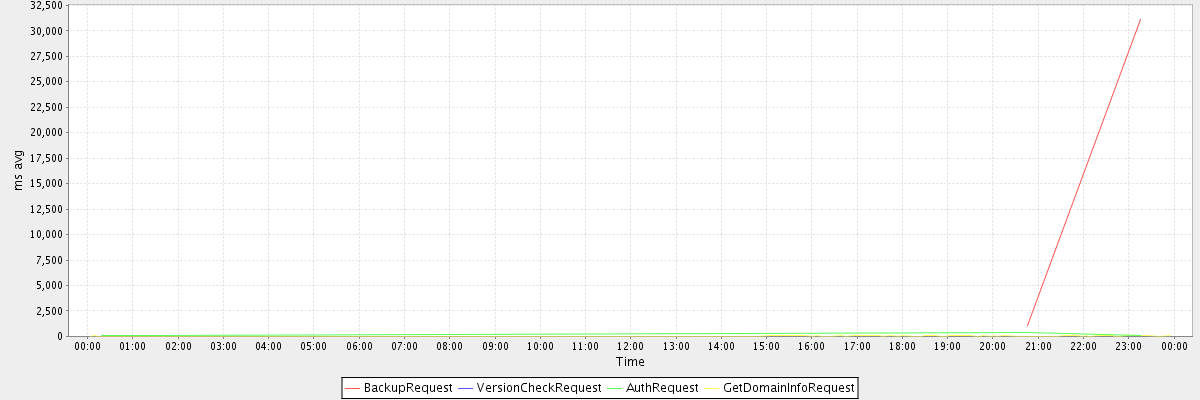 avg(BackupRequest) = 16066.00 avg(VersionCheckRequest) = 753.00 avg(AuthRequest) = 143.75 avg(GetDomainInfoRequest) = 5.29