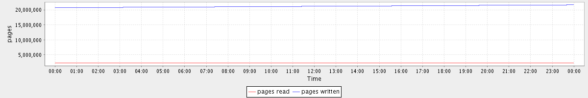 avg(pages read) = 2287319.63 avg(pages written) = 21173245.13