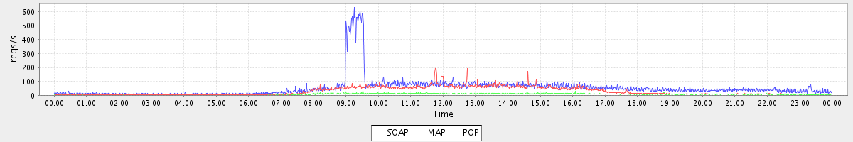 Host zm05.stanford.edu: Mailboxd: Request Rate by Client Protocol