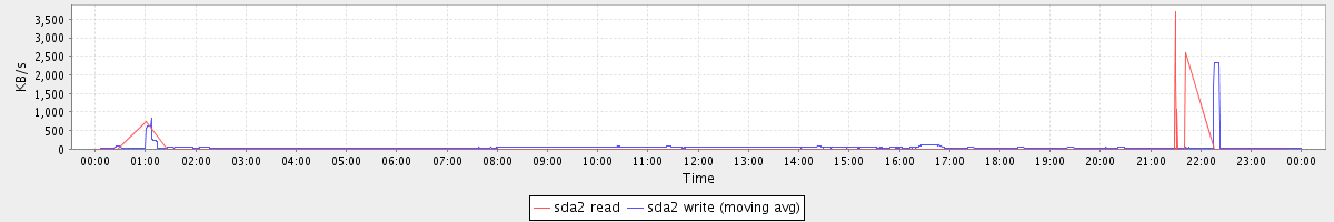 avg(sda2 read) = 3.62 avg(sda2 write) = 53.21