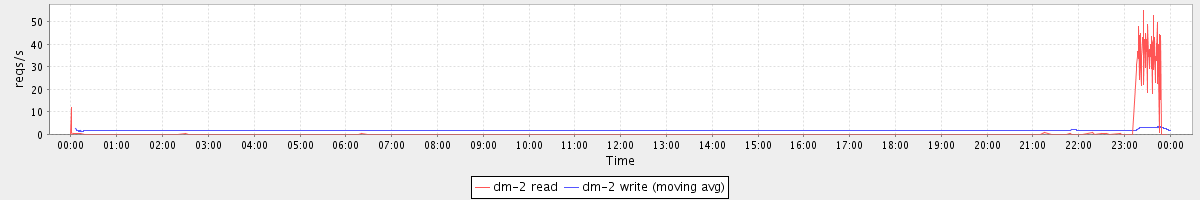 avg(dm-1 read) = 0.38 avg(dm-1 write) = 36.50