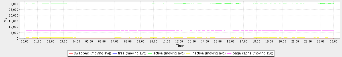 avg(swapped) = 0.25 avg(free) = 125.81 avg(active) = 30653.34 avg(inactive) = 659.26 avg(page cache) = 6603.26