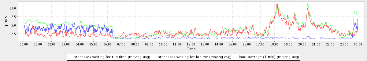 avg(processes waiting for run time) = 2.55 avg(processes waiting for io time) = 1.27 avg(load average (1 min)) = 4.06