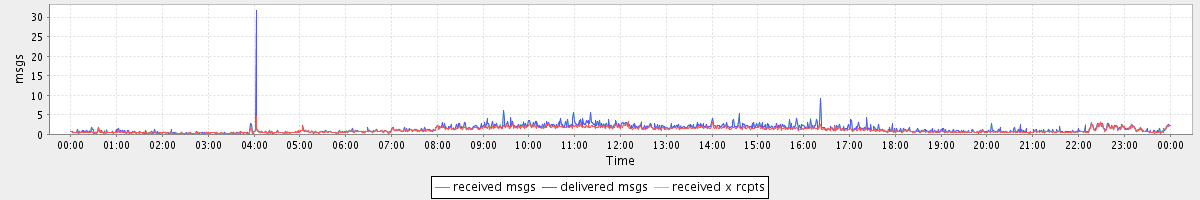 avg(received msgs) = 1.09 avg(delivered msgs) = 1.38 avg(received x rcpts) = 1.40