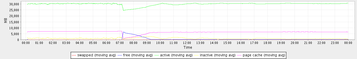 avg(swapped) = 0.25 avg(free) = 411.31 avg(active) = 30003.10 avg(inactive) = 1062.86 avg(page cache) = 6299.32