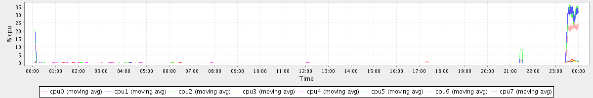 avg(cpu0) = 0.48 avg(cpu1) = 0.39 avg(cpu2) = 0.31 avg(cpu3) = 0.32 avg(cpu4) = 0.24 avg(cpu5) = 0.22 avg(cpu6) = 0.21 avg(cpu7) = 0.15