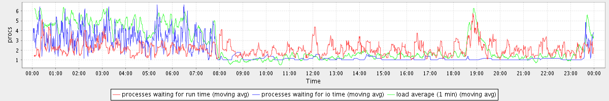 avg(processes waiting for run time) = 1.21 avg(processes waiting for io time) = 0.98 avg(load average (1 min)) = 2.56