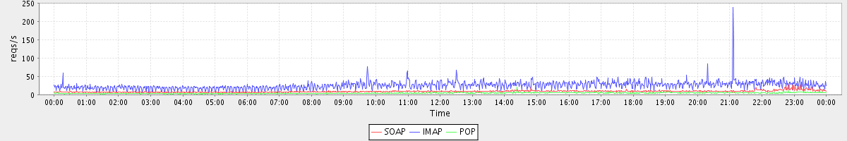 Host zm04.stanford.edu: Mailboxd: Request Rate by Client Protocol