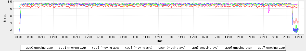 avg(cpu0) = 93.42 avg(cpu1) = 95.03 avg(cpu2) = 95.35 avg(cpu3) = 95.58 avg(cpu4) = 96.35 avg(cpu5) = 95.84 avg(cpu6) = 95.23 avg(cpu7) = 96.27