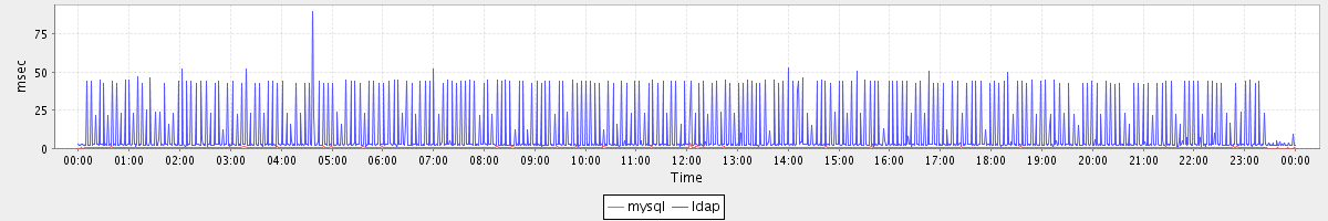 avg(mysql) = 0.23 avg(ldap) = 9.02