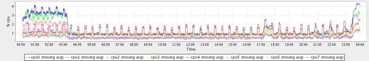 avg(cpu0) = 0.11 avg(cpu1) = 0.08 avg(cpu2) = 0.07 avg(cpu3) = 0.01 avg(cpu4) = 0.01 avg(cpu5) = 0.01 avg(cpu6) = 0.05 avg(cpu7) = 0.01