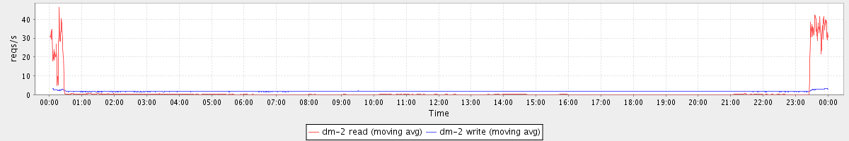avg(dm-1 read) = 0.46 avg(dm-1 write) = 60.63
