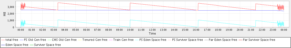 avg(total free) = 3032.31 avg(PS Old Gen free) = 2498.12 avg(CMS Old Gen free) = 0.00 avg(Tenured Gen free) = 0.00 avg(Train Gen free) = 0.00 avg(PS Eden Space free) = 533.49 avg(PS Survivor Space free) = 0.69 avg(Par Eden Space free) = 0.00 avg(Par Survivor Space free) = 0.00 avg(Eden Space free) = 0.00 avg(Survivor Space free) = 0.00