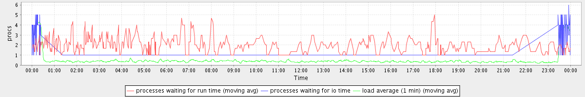 avg(processes waiting for run time) = 0.42 avg(processes waiting for io time) = 0.13 avg(load average (1 min)) = 0.51