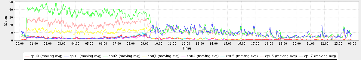 avg(cpu0) = 2.36 avg(cpu1) = 0.36 avg(cpu2) = 0.41 avg(cpu3) = 0.29 avg(cpu4) = 0.23 avg(cpu5) = 0.26 avg(cpu6) = 0.33 avg(cpu7) = 0.26