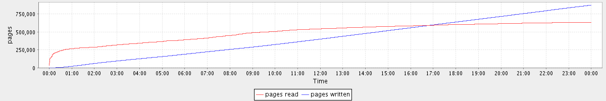 avg(pages read) = 495941.28 avg(pages written) = 414371.85