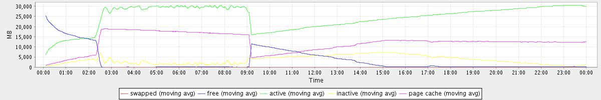 avg(swapped) = 0.21 avg(free) = 3249.80 avg(active) = 24698.54 avg(inactive) = 3563.38 avg(page cache) = 12169.58