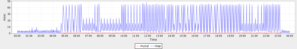 avg(mysql) = 0.29 avg(ldap) = 4.91
