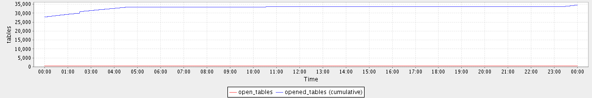 avg(open_tables) = 396.91 avg(opened_tables (cumulative)) = 33122.62