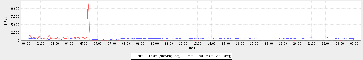 avg(dm-1 read) = 14.17 avg(dm-1 write) = 73.55