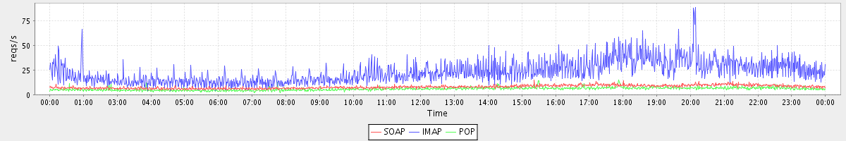 Host zm05.stanford.edu: Mailboxd: Request Rate by Client Protocol