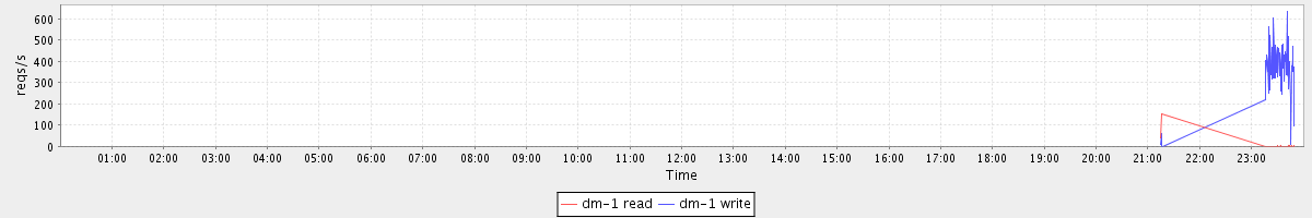 avg(dm-1 read) = 0.09 avg(dm-1 write) = 9.03
