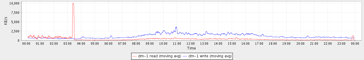 avg(dm-0 read) = 1666.64 avg(dm-0 write) = 283.45