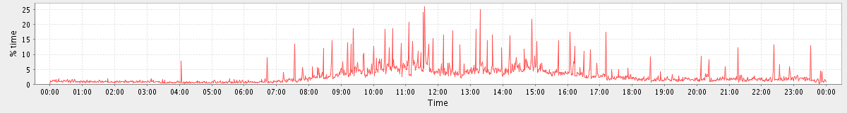 avg(user) = 12.25 avg(sys) = 1.13 avg(idle) = 81.86 avg(iowait) = 4.36 avg(nice) = 0.00 avg(irq) = 0.04 avg(softirq) = 0.37