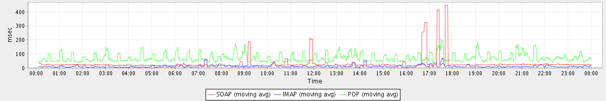 Host zm06.stanford.edu: Mailboxd: Response Time by Client Protocol