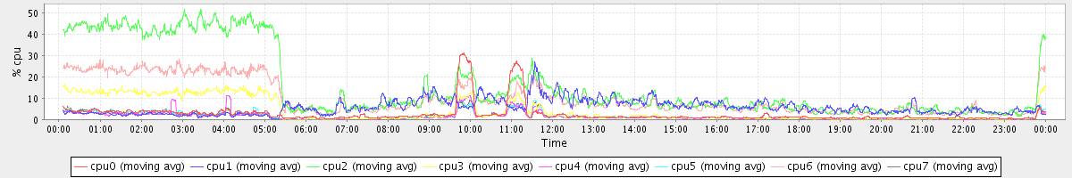 avg(cpu0) = 1.89 avg(cpu1) = 0.23 avg(cpu2) = 0.30 avg(cpu3) = 0.19 avg(cpu4) = 0.12 avg(cpu5) = 0.17 avg(cpu6) = 0.23 avg(cpu7) = 0.16