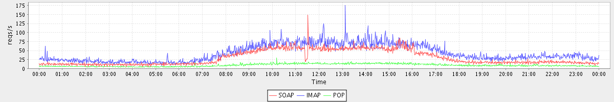 Host zm09.stanford.edu: Mailboxd: Request Rate by Client Protocol