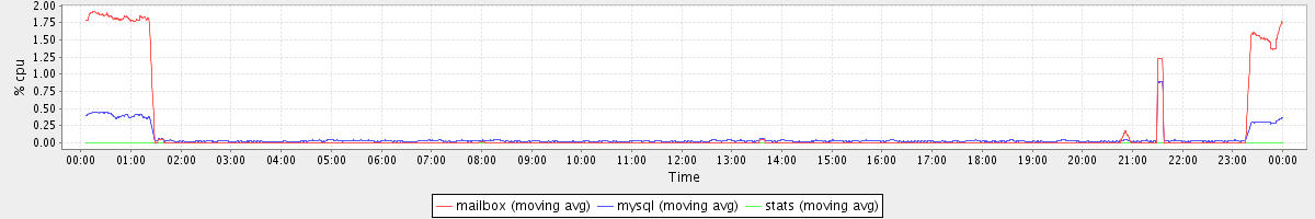 avg(mailbox) = 0.16 avg(mysql) = 0.06 avg(stats) = 0.00