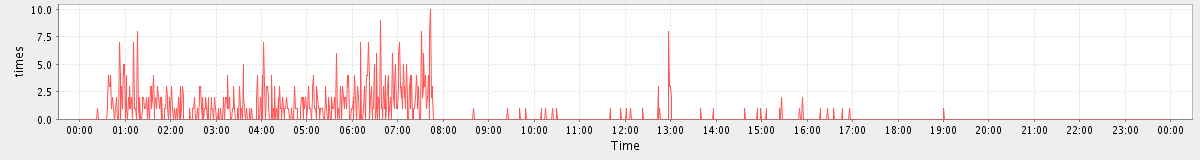 max(AuthRequest) = 428.00 max(MsgActionRequest.move) = 255.00 max(NoOpRequest) = 342.00 max(GetFolderRequest) = 281.00 max(SyncRequest) = 3022.00 max(GetMsgRequest) = 1073.00 max(GetAppointmentRequest) = 1042.00 max(SearchRequest) = 623.00 max(GetInfoRequest) = 431.00 max(MsgActionRequest.delete) = 824.00