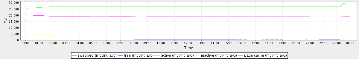 avg(swapped) = 0.25 avg(free) = 321.60 avg(active) = 27199.33 avg(inactive) = 3471.04 avg(page cache) = 18980.71