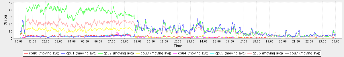 avg(cpu0) = 2.29 avg(cpu1) = 0.29 avg(cpu2) = 0.37 avg(cpu3) = 0.26 avg(cpu4) = 0.19 avg(cpu5) = 0.22 avg(cpu6) = 0.28 avg(cpu7) = 0.21
