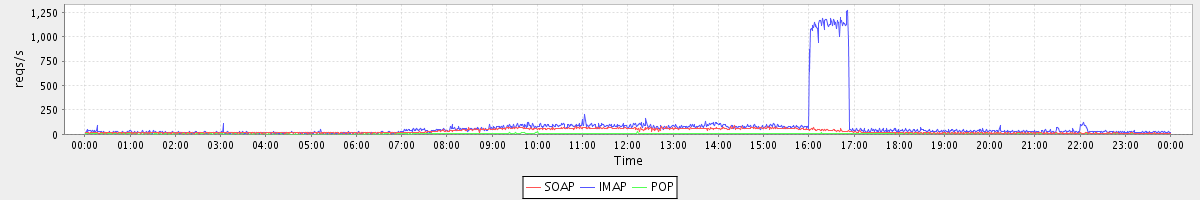 Host zm08.stanford.edu: Mailboxd: Request Rate by Client Protocol