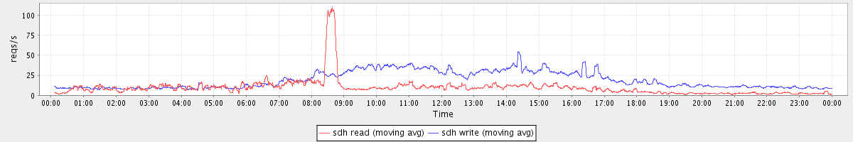 avg(sda1 read) = 25.47 avg(sda1 write) = 47.28