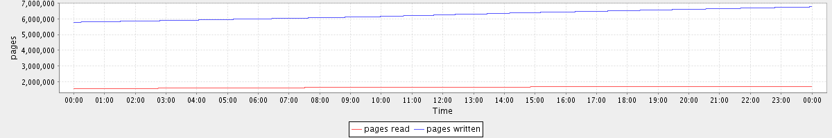 avg(pages read) = 1657450.60 avg(pages written) = 6256747.57