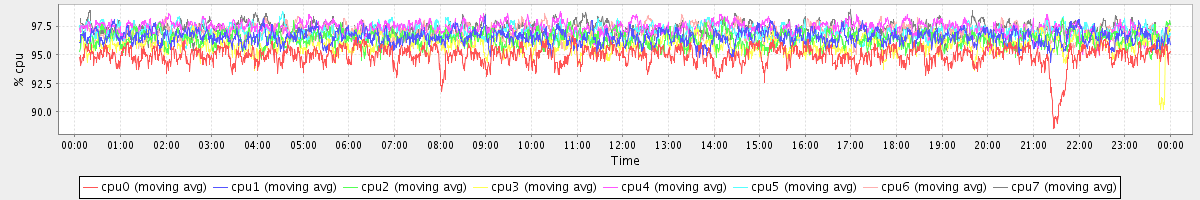 avg(cpu0) = 94.93 avg(cpu1) = 96.55 avg(cpu2) = 96.39 avg(cpu3) = 95.89 avg(cpu4) = 97.29 avg(cpu5) = 96.97 avg(cpu6) = 96.95 avg(cpu7) = 97.21