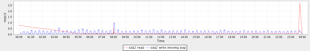avg(sda2 read) = 0.05 avg(sda2 write) = 2.65