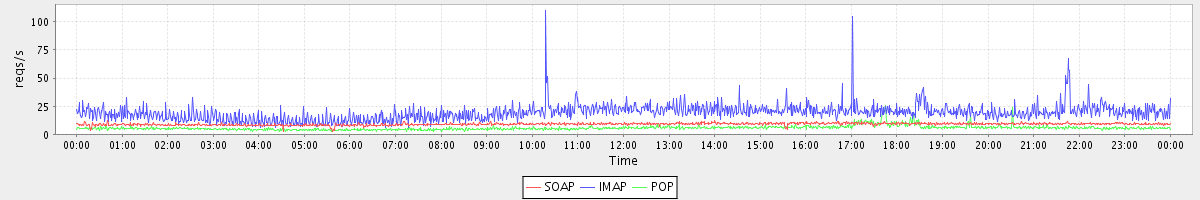 Host zm02.stanford.edu: Mailboxd: Request Rate by Client Protocol