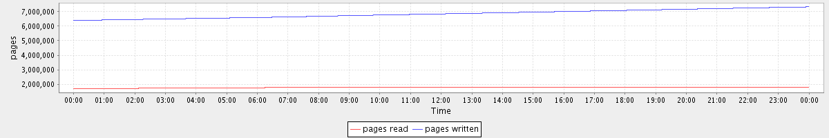 avg(pages read) = 1769599.64 avg(pages written) = 6852109.79